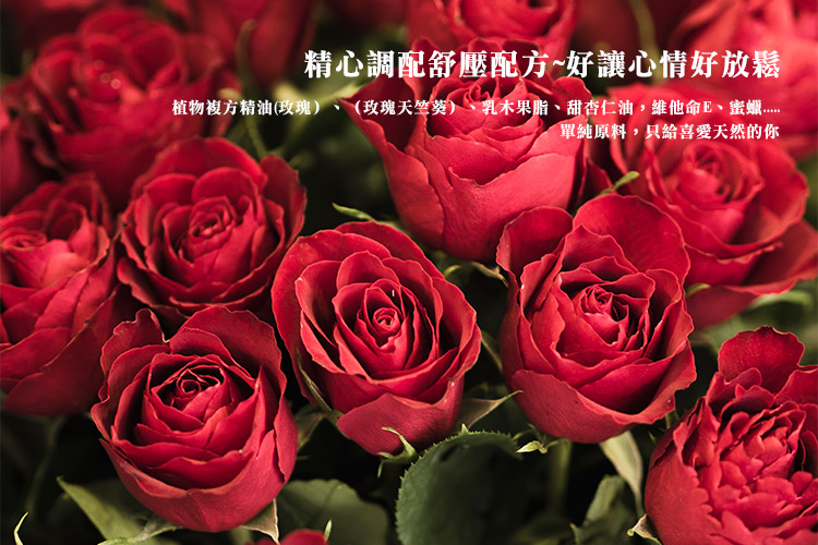 * 單純玫瑰精油原料,彷彿置身花園的浪漫輕鬆
